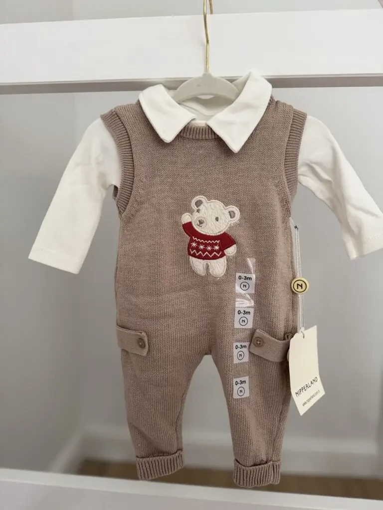• Komplet 3 elementy: body + ogrodniczki + sweterek