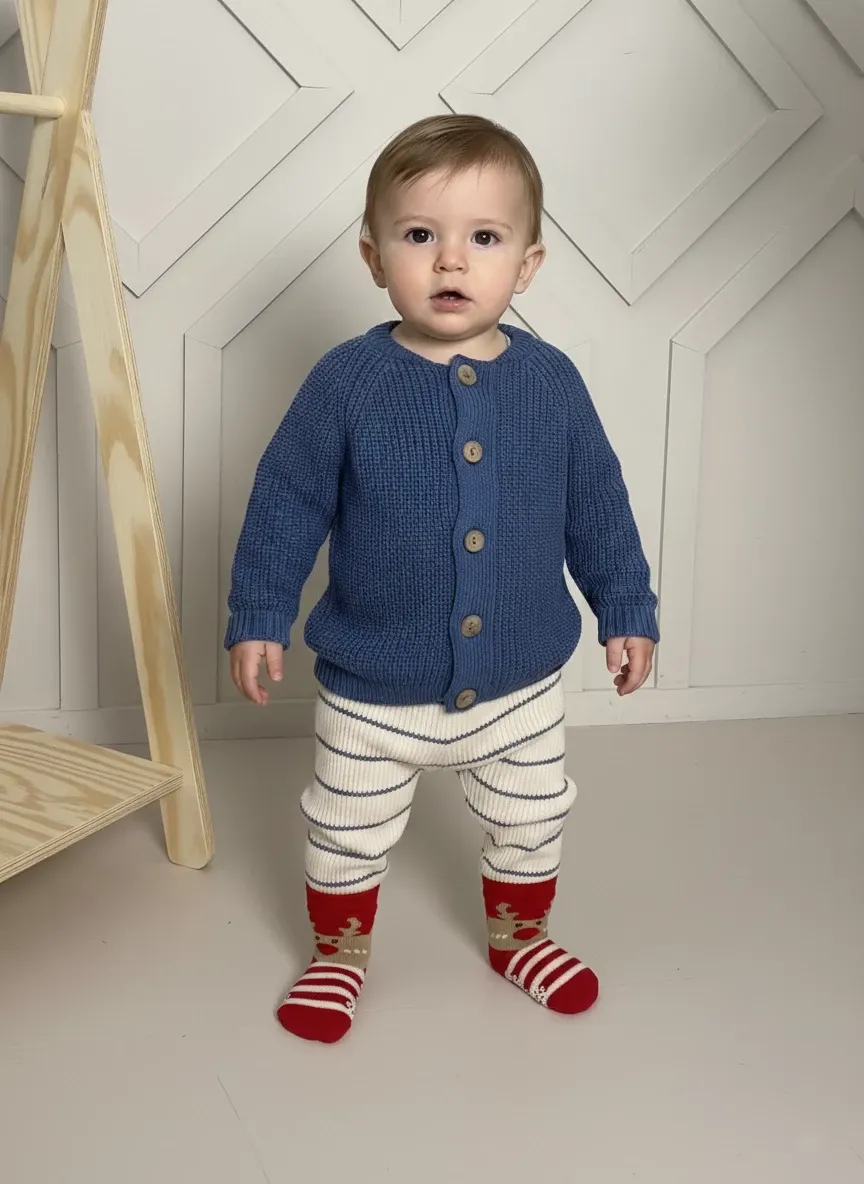 Elegancki i wygodny zestaw dla małego odkrywcy! Nasz granatowy sweter na guziki to klasyka w dziecięcej garderobie – miękki, przyjemny w dotyku i łatwy do zakładania dzięki praktycznym guziczkom.