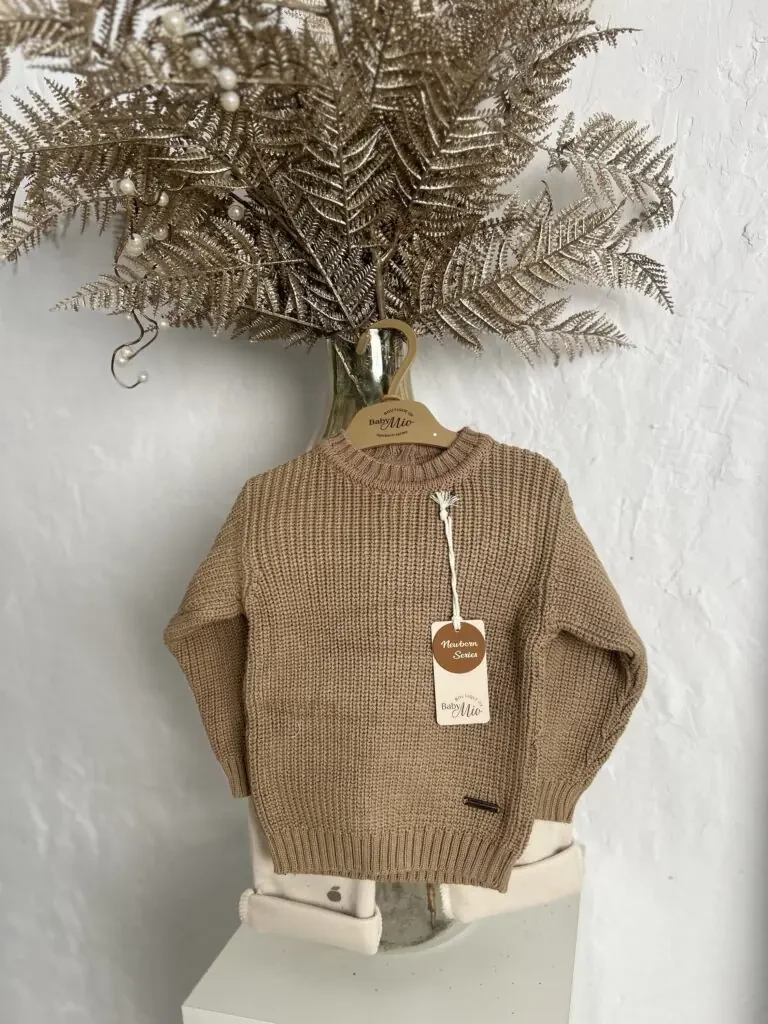 Komplet dostępny w różnych kolorach – beż, karmel, ecru, granat. Uniwersalny zestaw dla chłopca i dziewczynki.